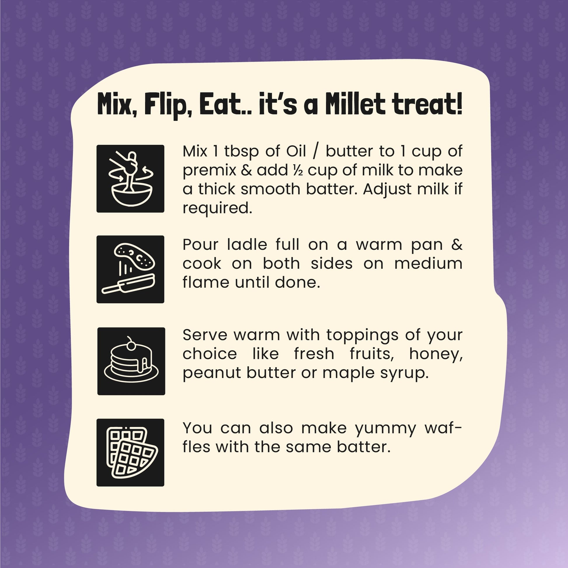 Breakfast being the first meal of the day is the most important one too! What better way to start your day.. than with some yummy and delicious Pancakes with the super nutrition of Millets and the power of plant based proteins you can enjoy a guilt free cheat day everyday!