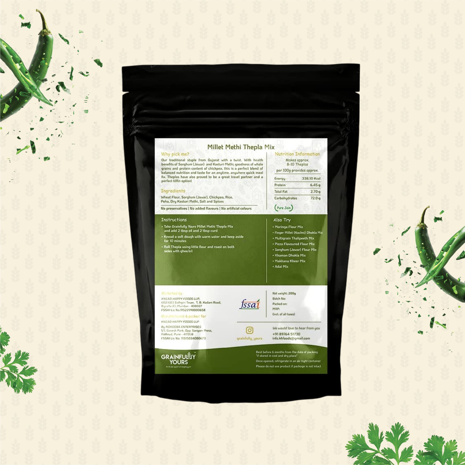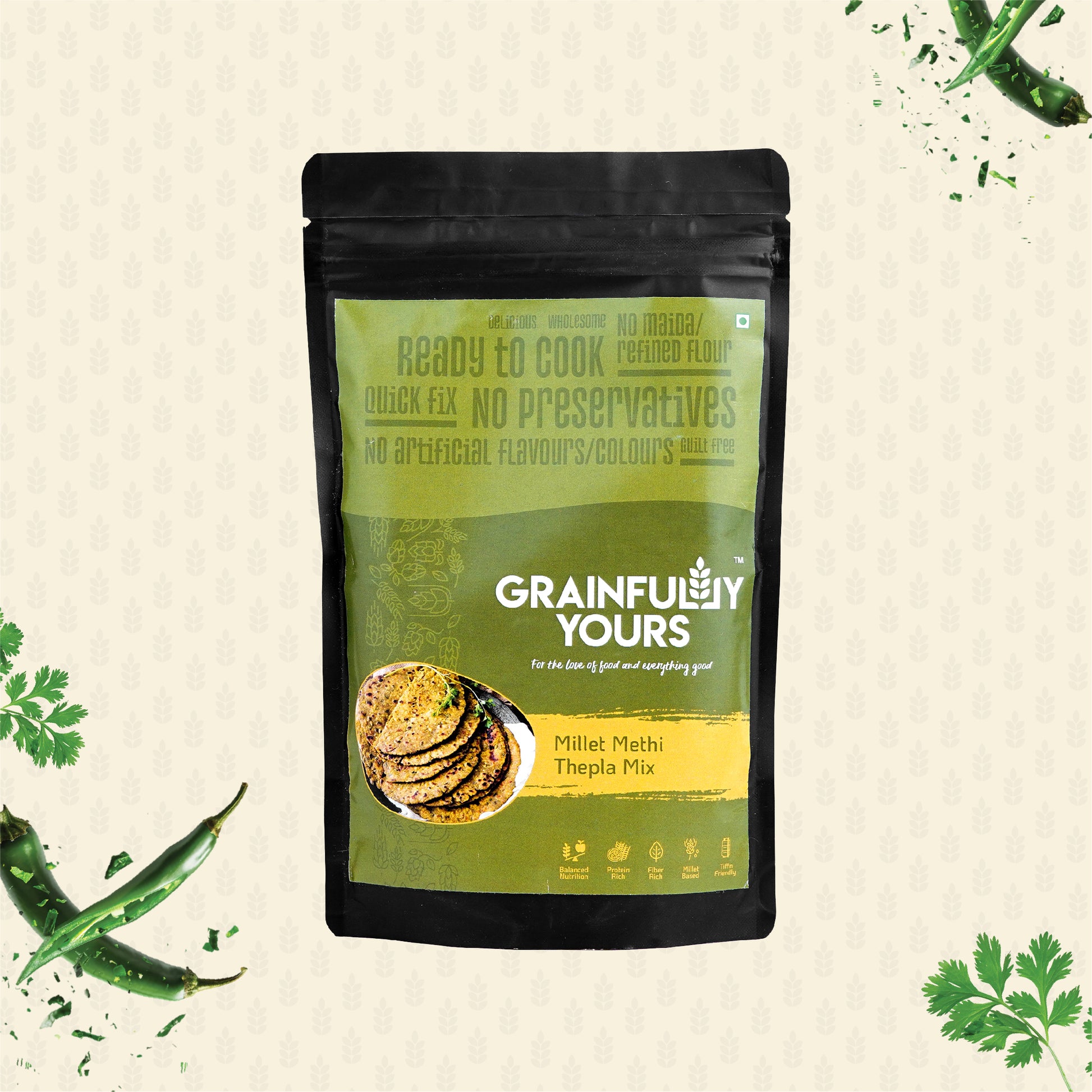 Health benefits of Millet & Kasturi Methi & protein content of Chickpea, a perfect blend of balanced nutrition and taste. Breakfast, lunch or a quick snack, Theplas are the best comfort food option.