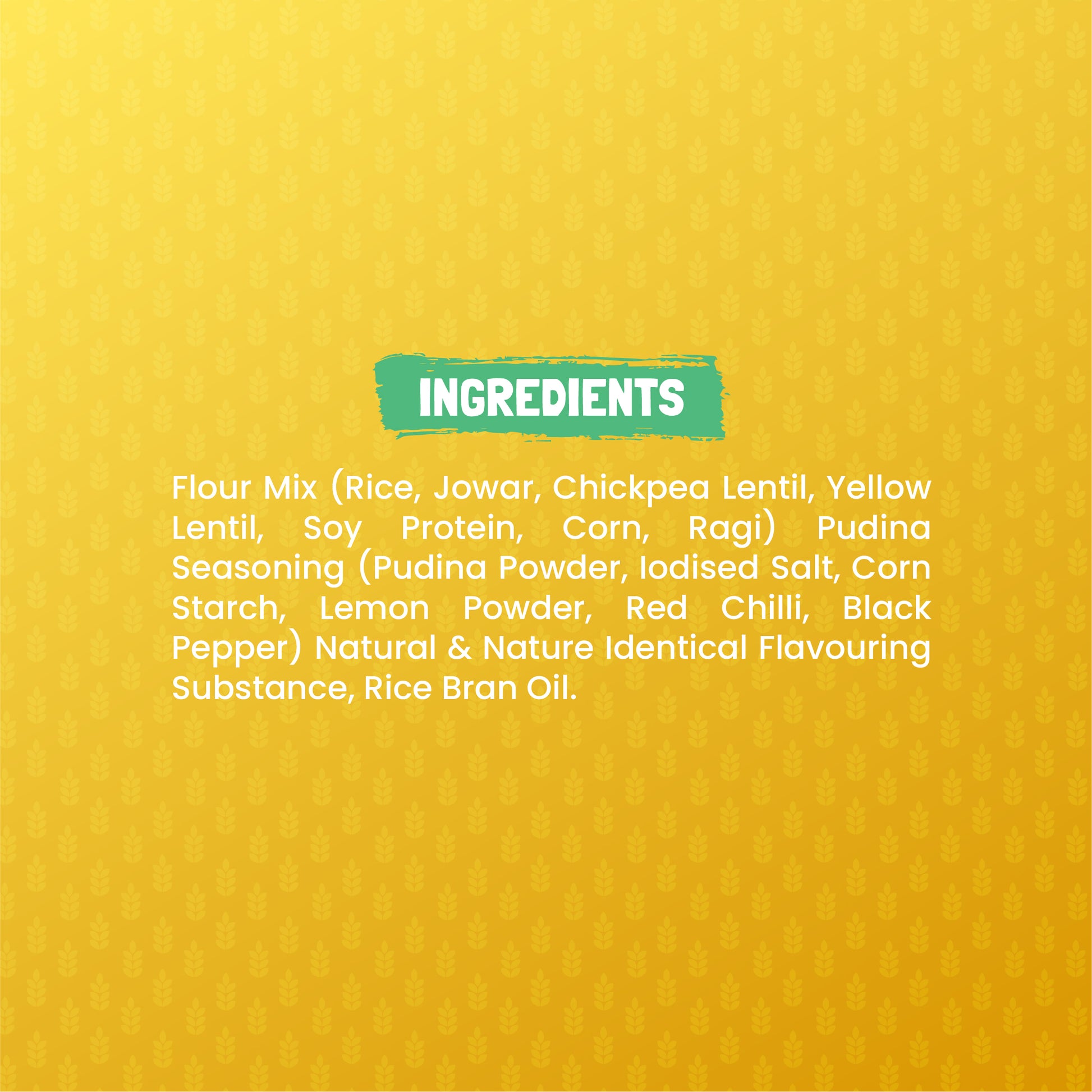 - Pudina Seasoning (Pudina Powder, Salt, Corn starch, lemon Powder, Red chilli, black pepper)